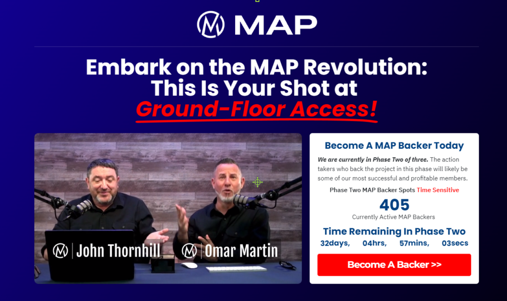Created by Super affiliate John Thornhill and Omar Martin, MAP is redefining the game with its Audience Over Offer strategy, ensuring you’re not just chasing sales, but building a loyal following eager to see what you’ll do next. Here are the unparalleled benefits of becoming a MAP backer: